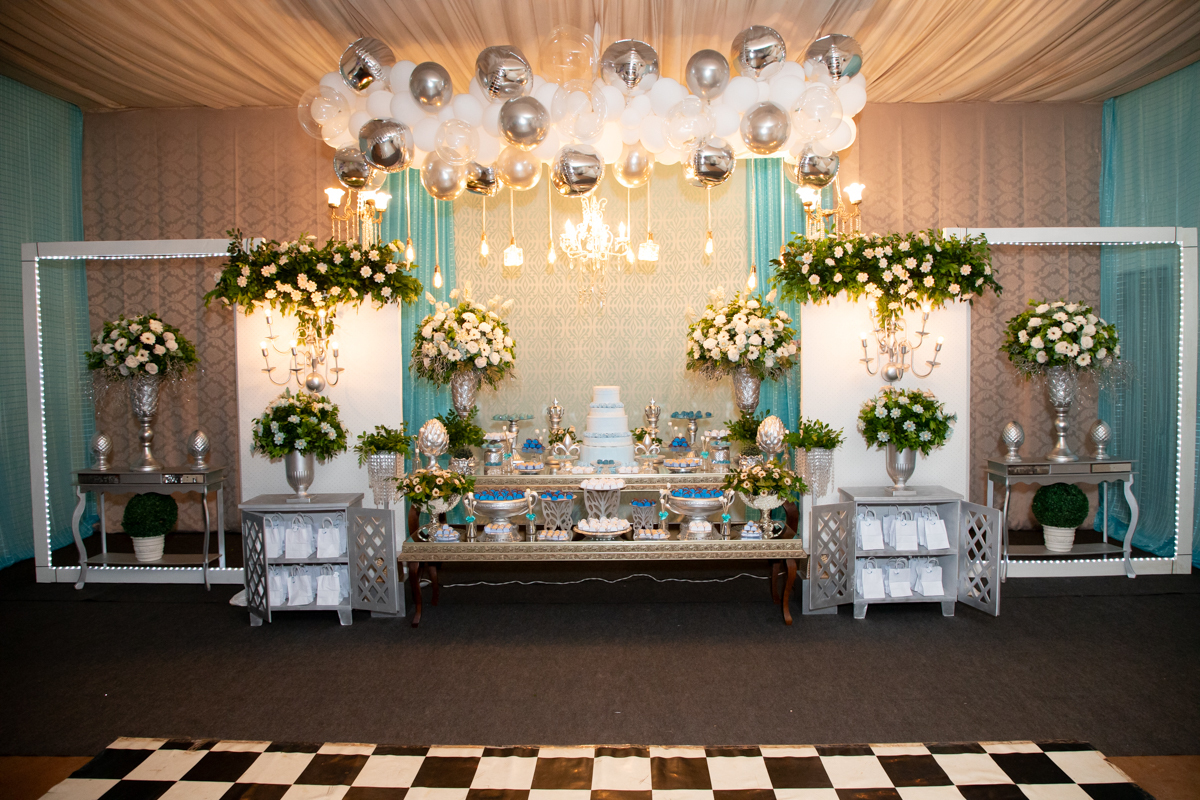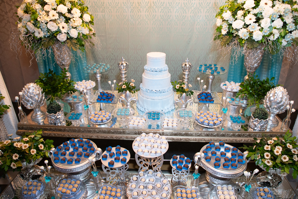 A festa contou com uma linda recepção, muitos comes e bebidas, deliciosos docinhos, além de muita música, dança e animação, que fizeram todos aproveitarem cada instante dessa celebração tão especial.