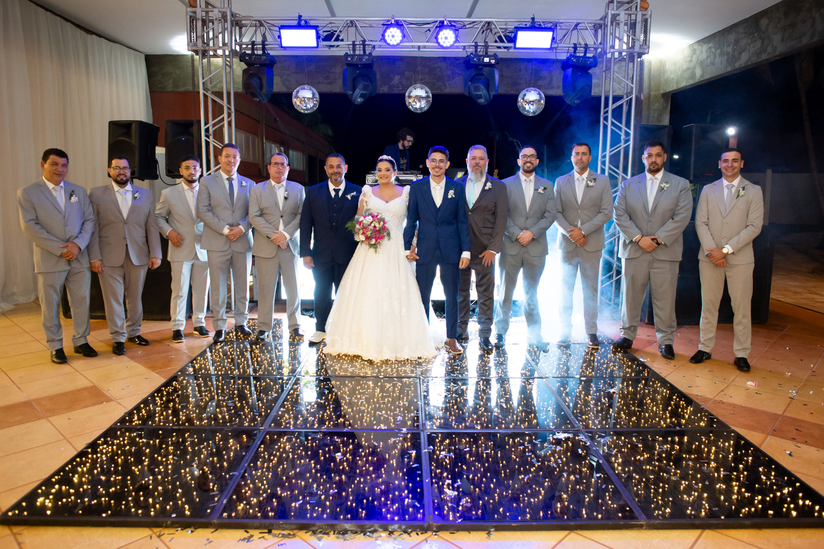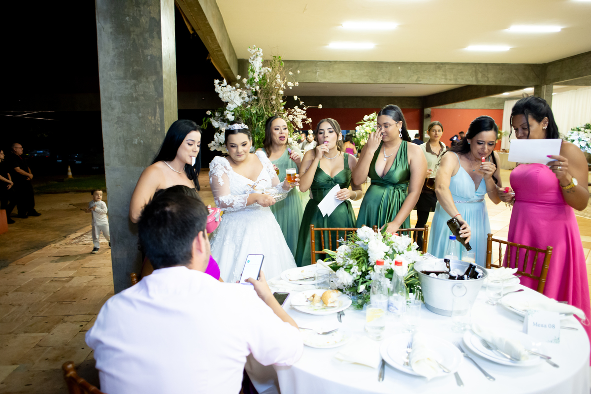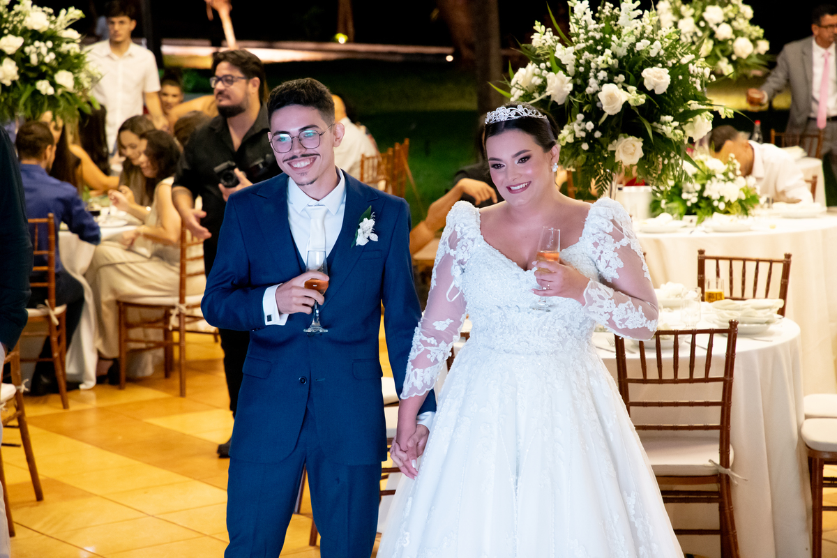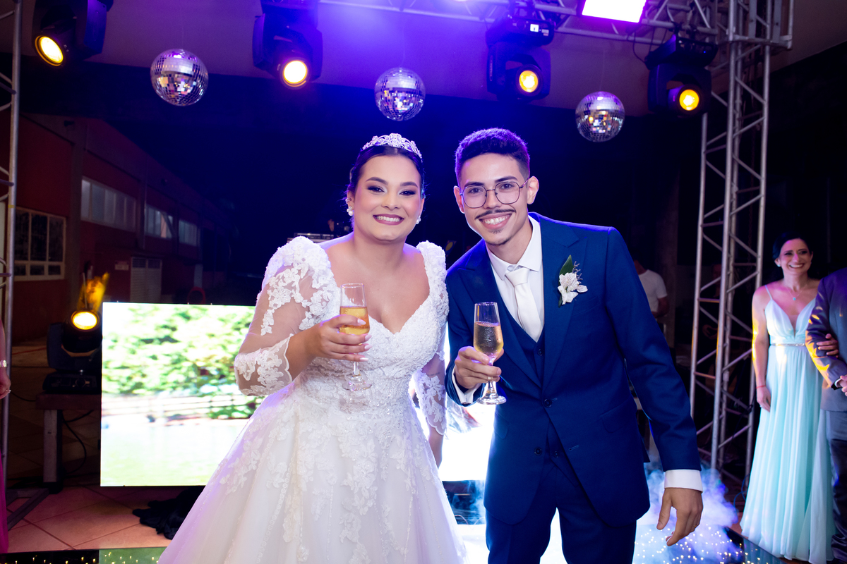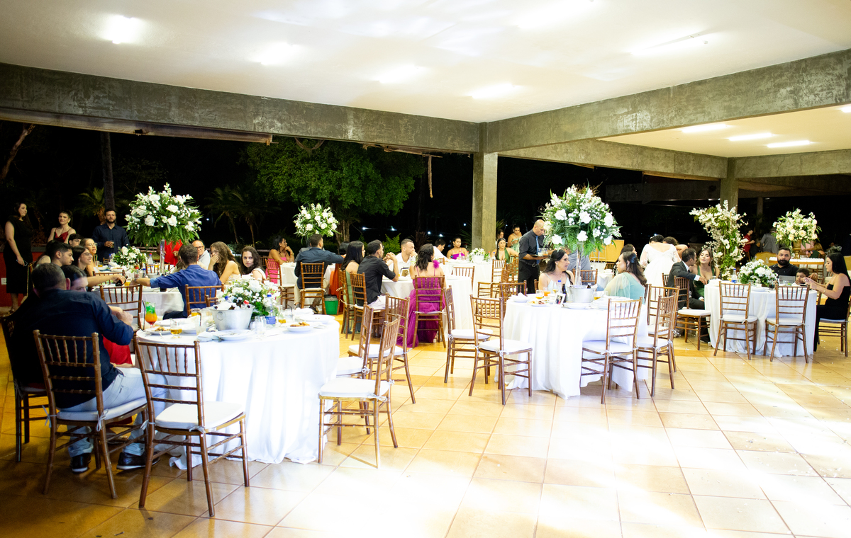 Após a cerimônia, a celebração continuou no Tênis Club, em uma recepção repleta de alegria, abraços, sorrisos e momentos inesquecíveis ao lado de pessoas queridas. Cada detalhe refletiu o amor do casal e a felicidade de compartilhar esse dia tão esperado com quem faz parte da sua história.