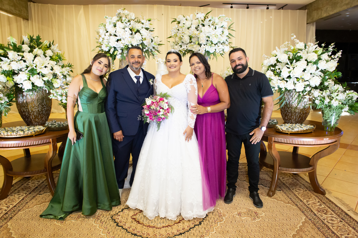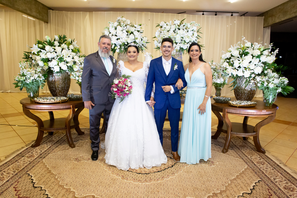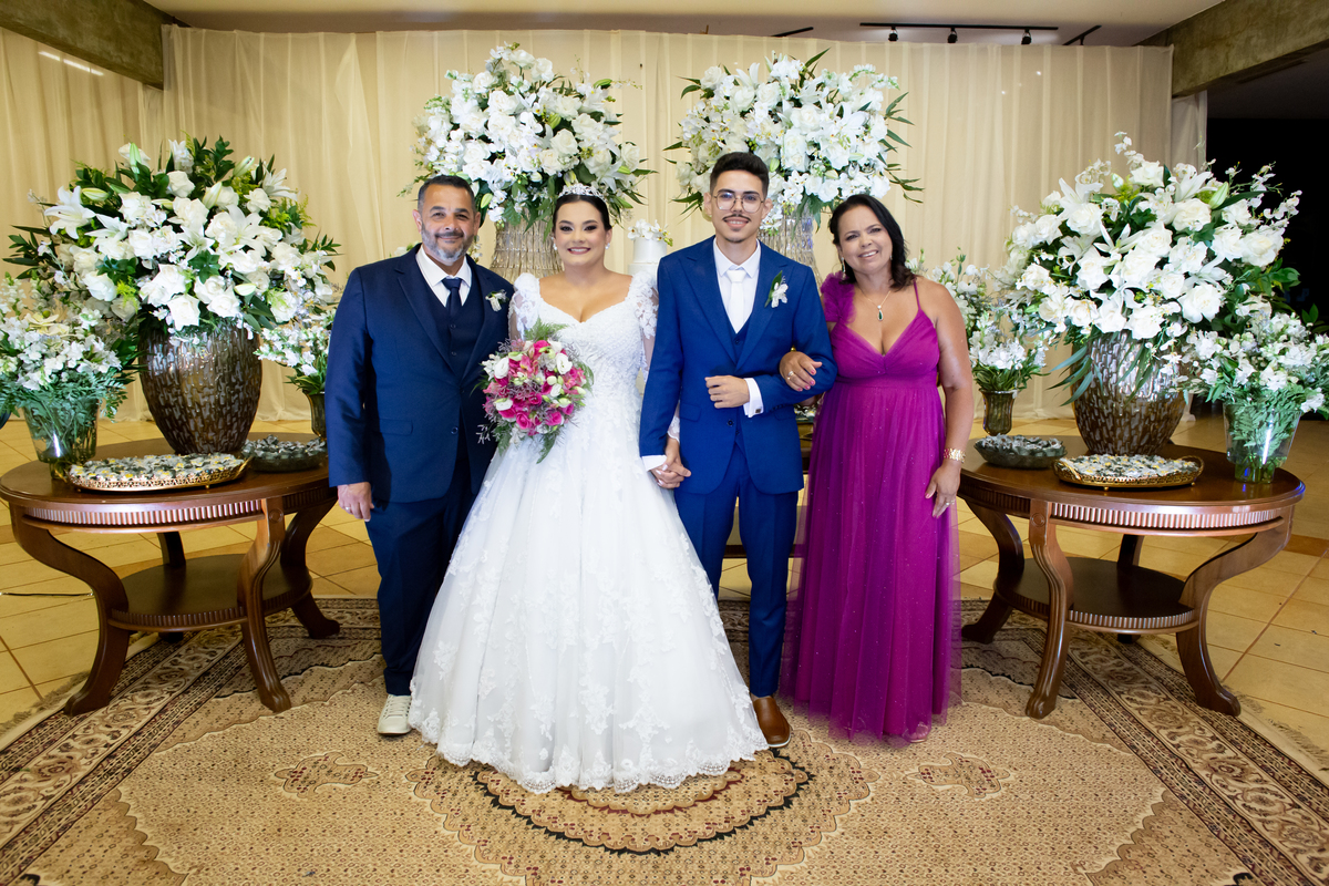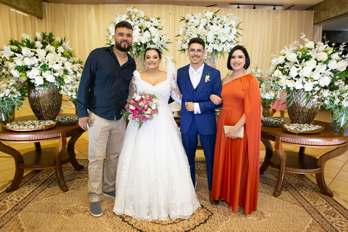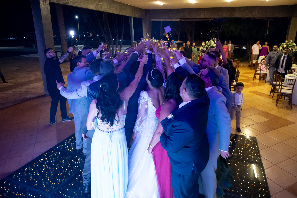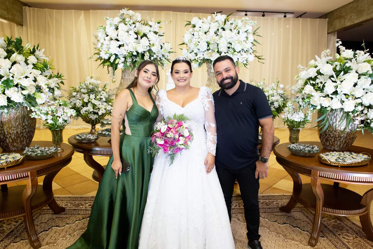 Após a cerimônia, a celebração continuou no Tênis Club, em uma recepção repleta de alegria, abraços, sorrisos e momentos inesquecíveis ao lado de pessoas queridas. Cada detalhe refletiu o amor do casal e a felicidade de compartilhar esse dia tão esperado com quem faz parte da sua história.