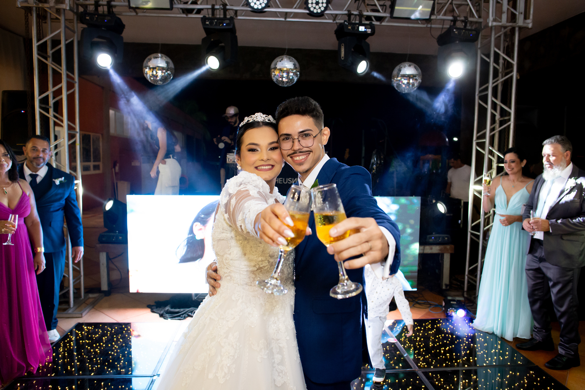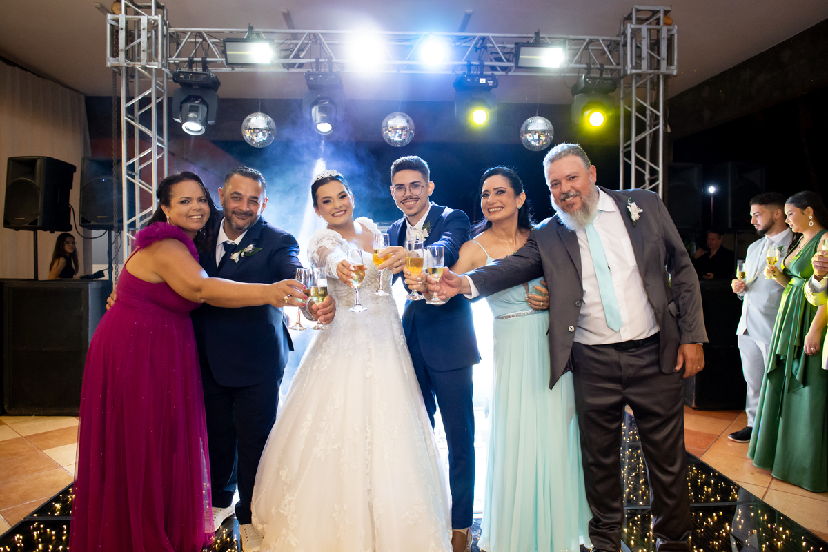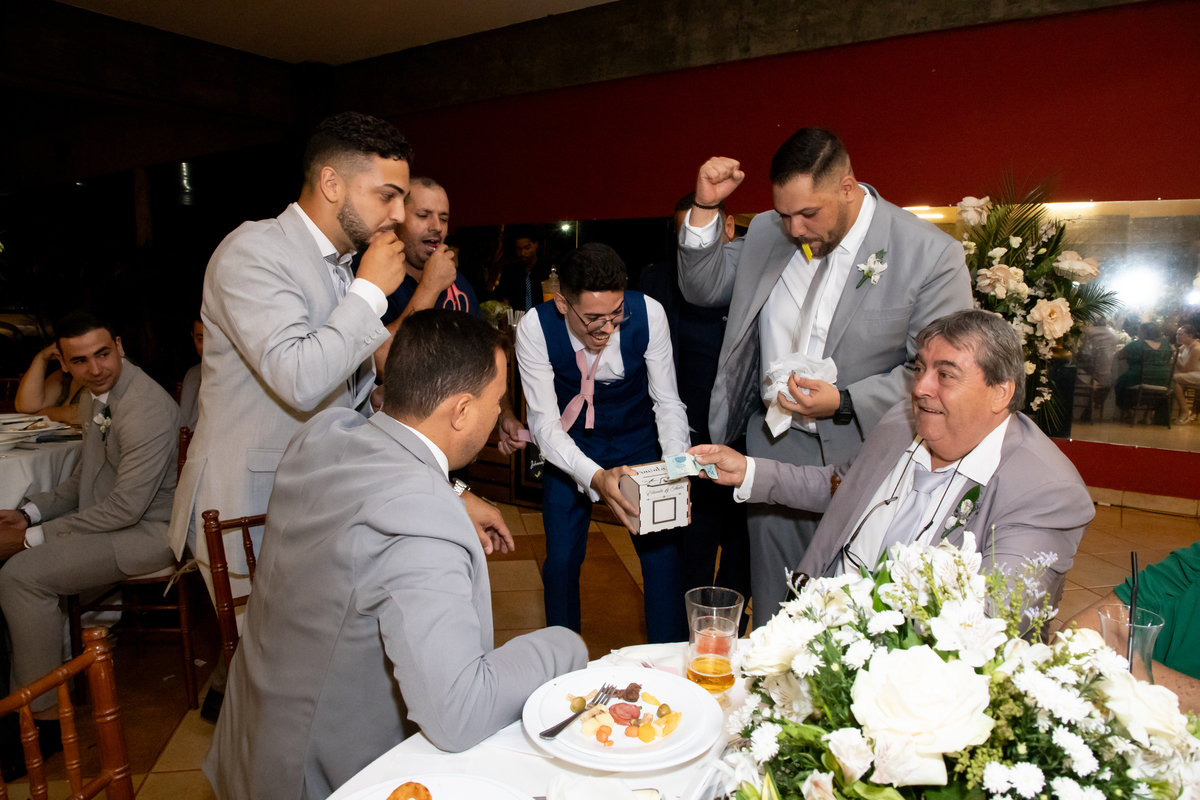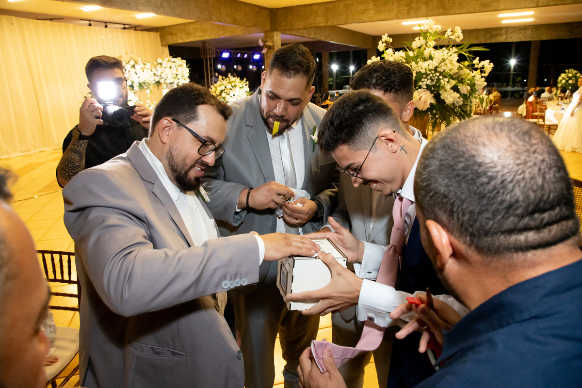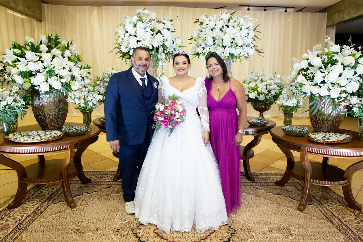 Após a cerimônia, a celebração continuou no Tênis Club, em uma recepção repleta de alegria, abraços, sorrisos e momentos inesquecíveis ao lado de pessoas queridas. Cada detalhe refletiu o amor do casal e a felicidade de compartilhar esse dia tão esperado com quem faz parte da sua história.