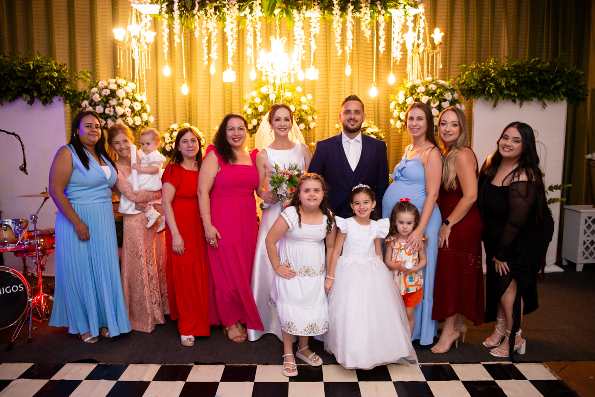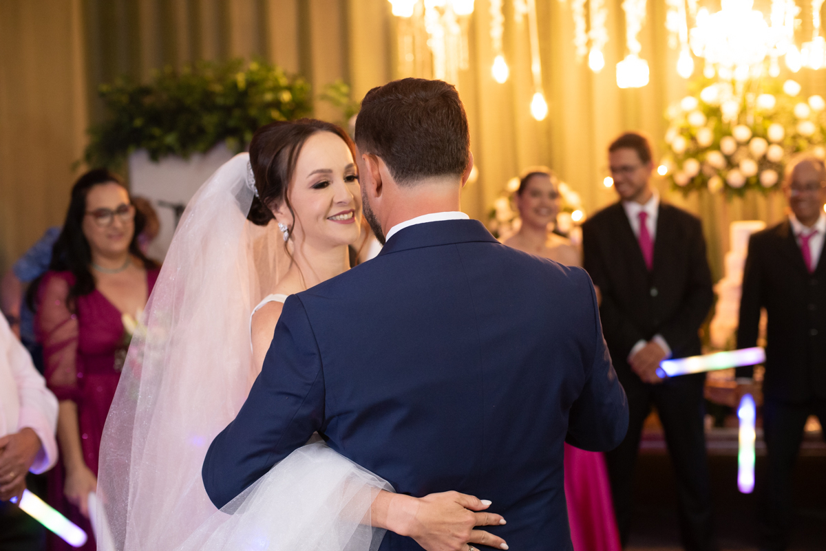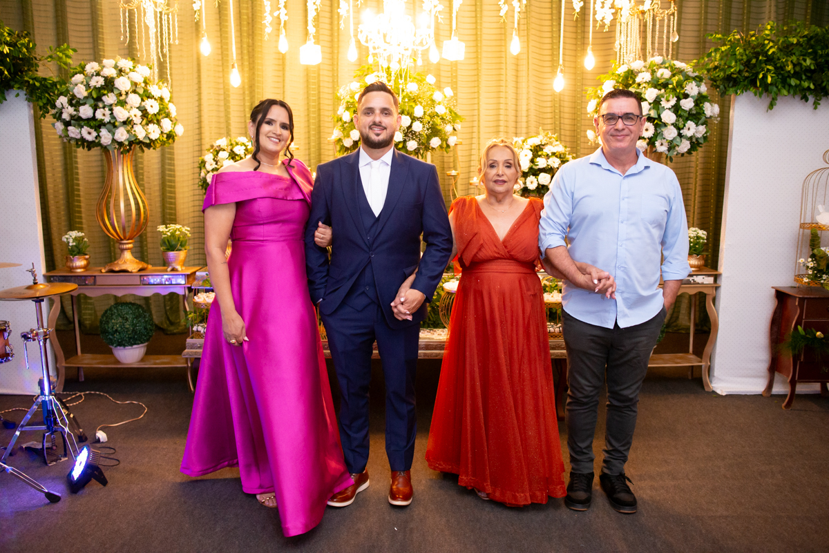 A recepção aconteceu no Salão do Lua Cheia, em uma noite inesquecível, embalada por muita música, alegria e emoção. Familiares e amigos estiveram presentes para celebrar, sorrir, dançar e brindar ao amor desse casal tão especial.