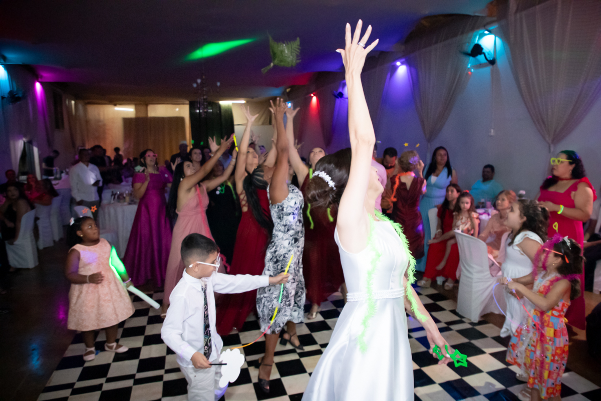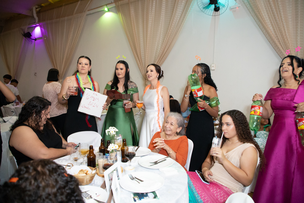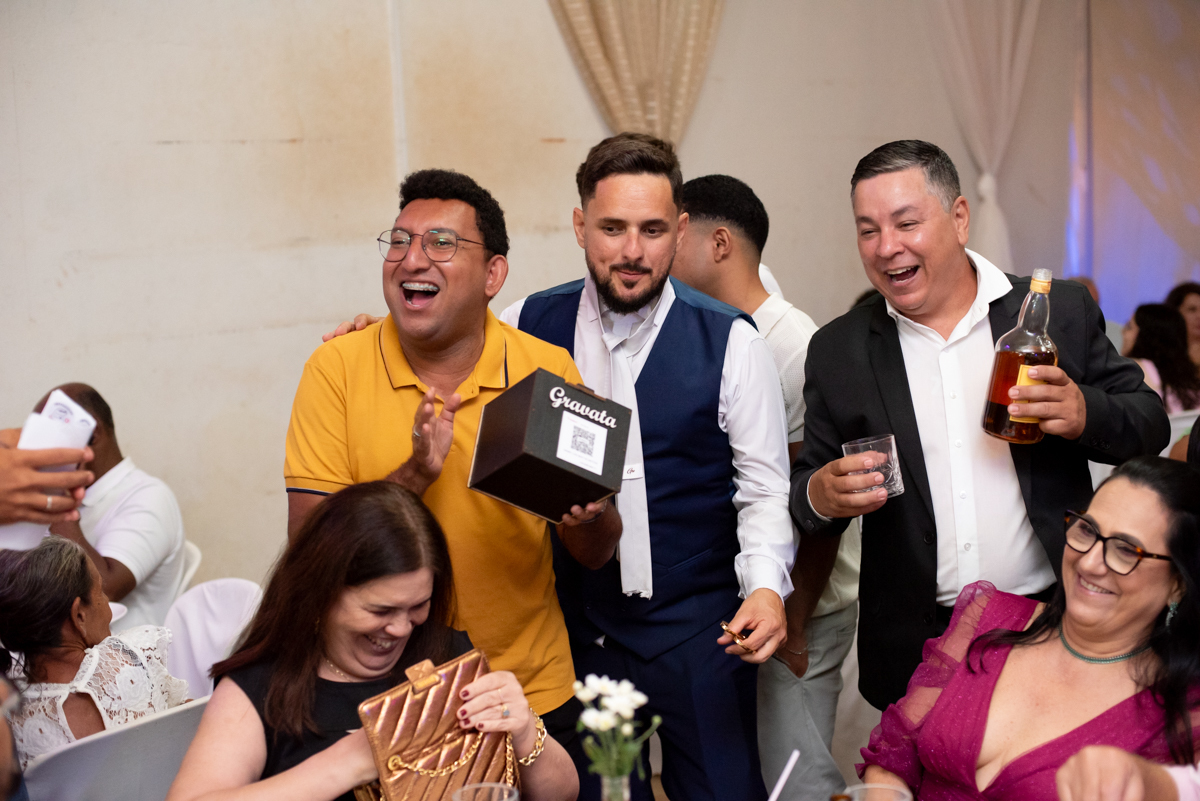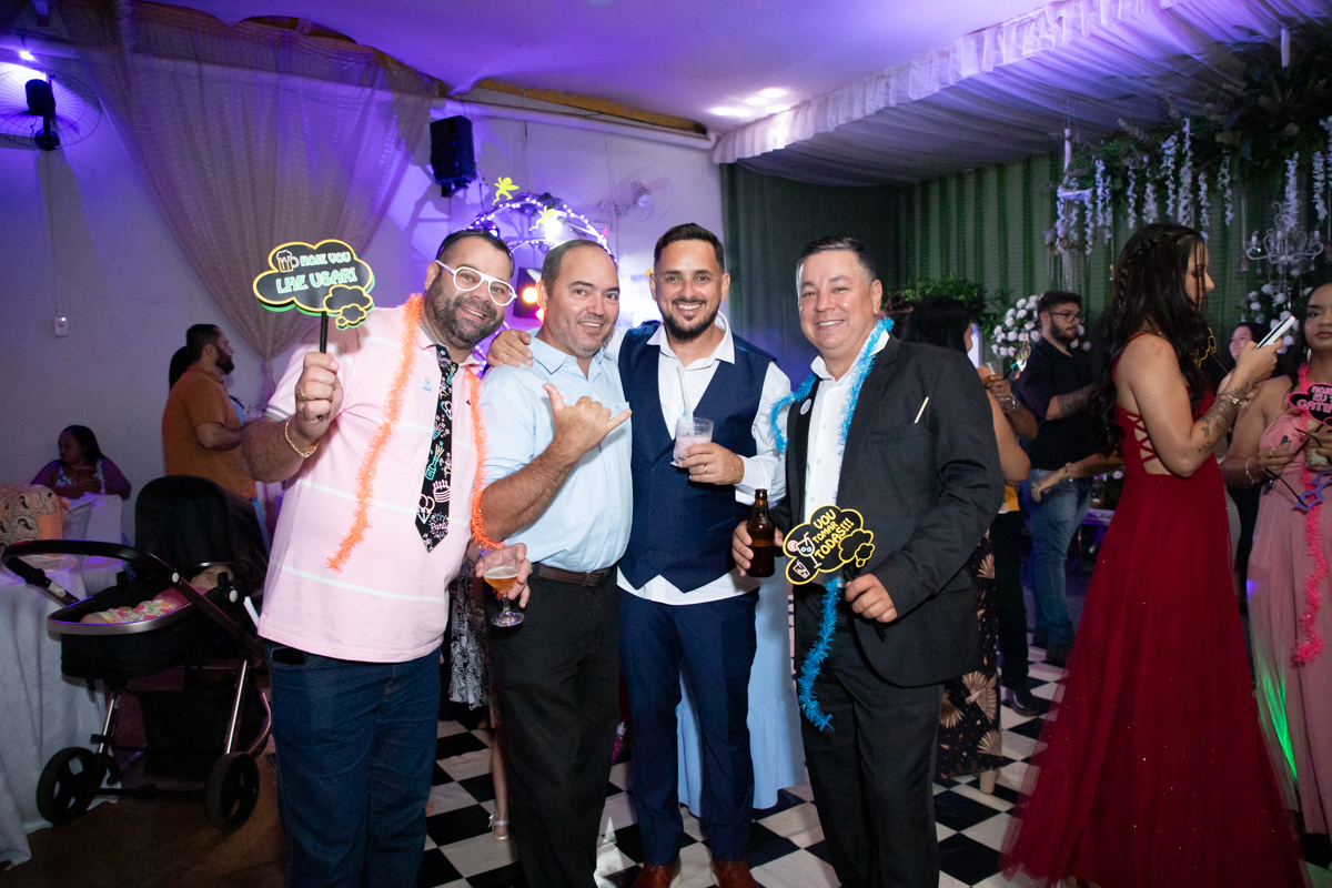 A recepção aconteceu no Salão do Lua Cheia, em uma noite inesquecível, embalada por muita música, alegria e emoção. Familiares e amigos estiveram presentes para celebrar, sorrir, dançar e brindar ao amor desse casal tão especial.